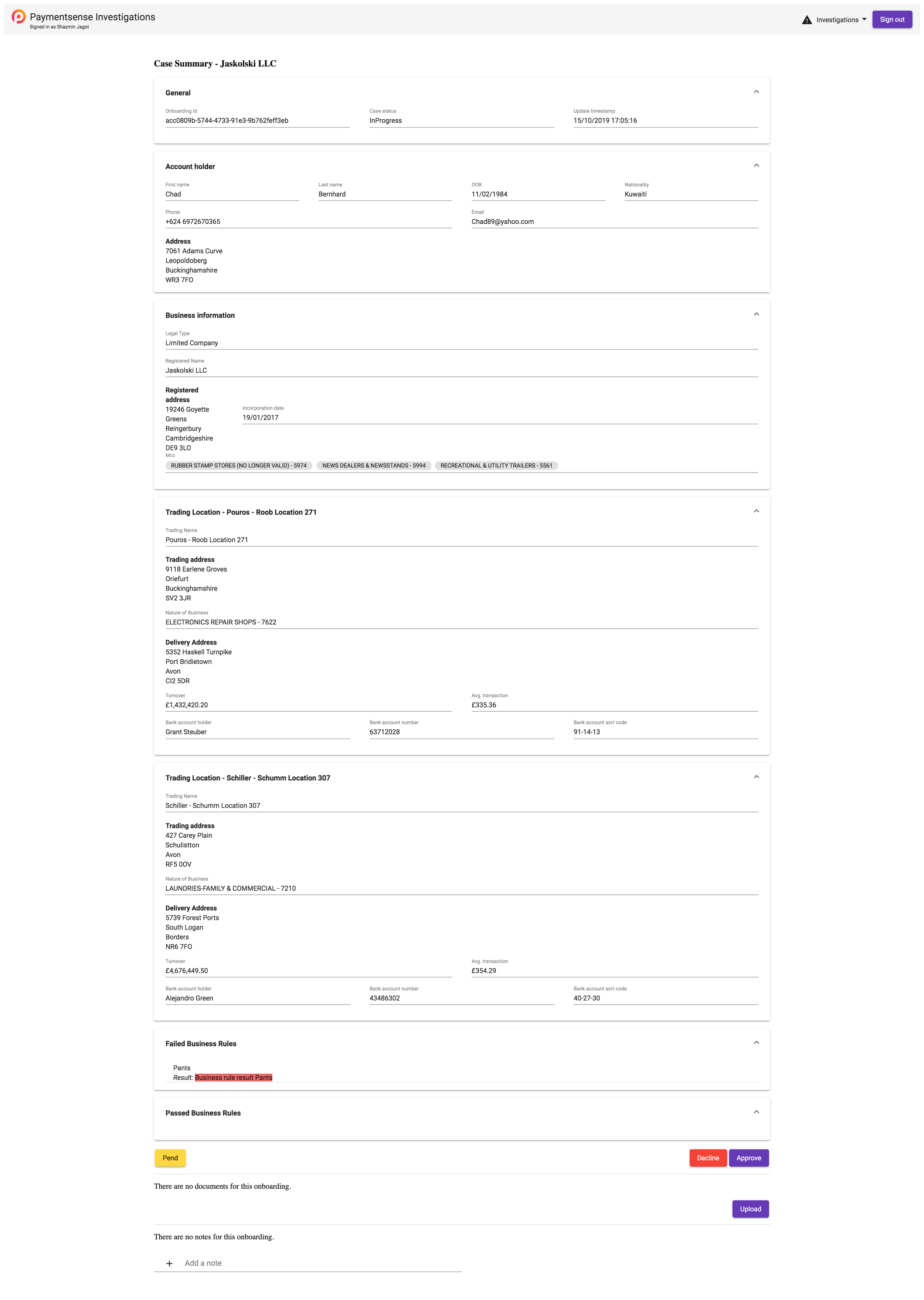 This department was in charge of company checks to ensure no fraudulent activity was taking place before the business was accepted as a client for card payments.